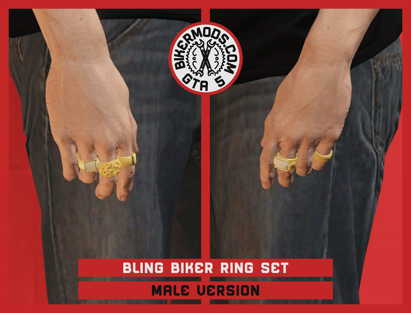 Bling Biker Ring Set (Gold)