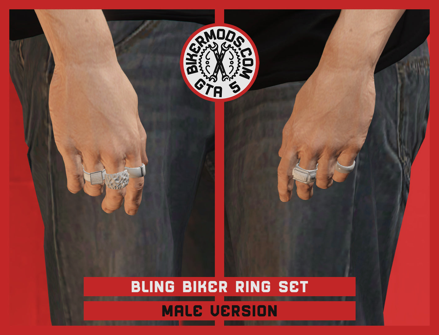 Bling Biker Ring Set (Silver)