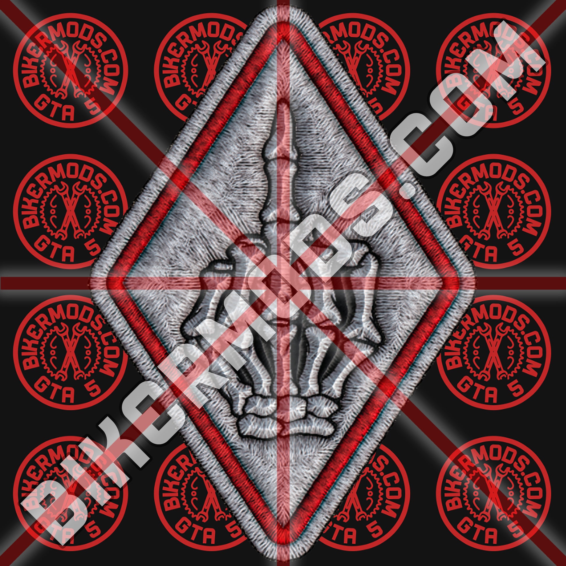 Skeleton Middle Finger Diamond Patch (White with Red Border)